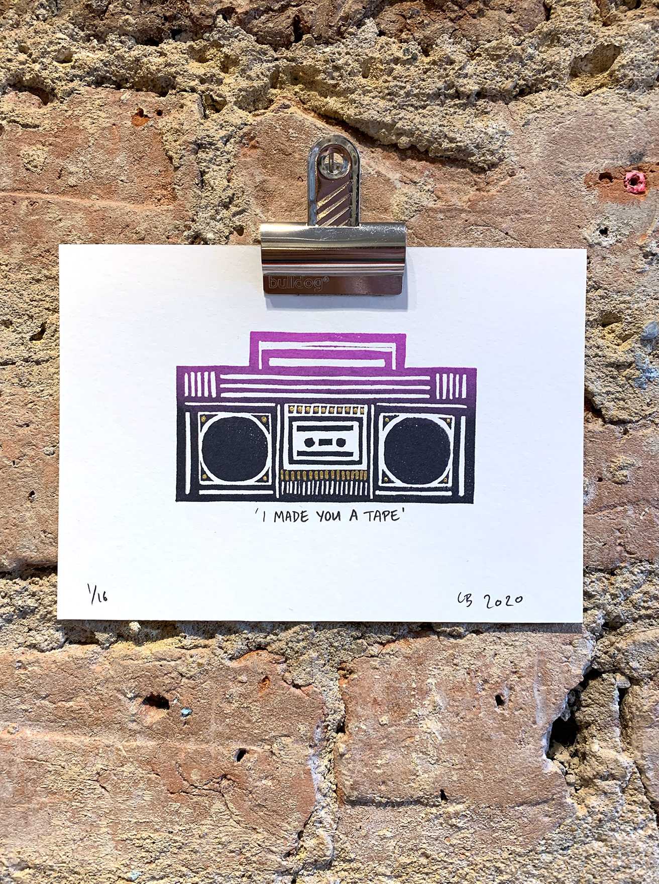 There is only one edition of 'I Made You A Tape – Purple' remaining and it's currently framed and hanging in the gallery. Please contact us for more information.